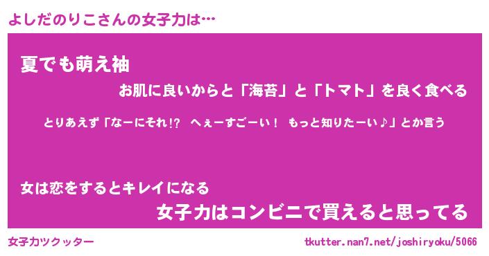 | ヒーロー風カッコイイあだ名 | 『スーパーヨシダノリコ』『天弓騎士ヨシ』 |