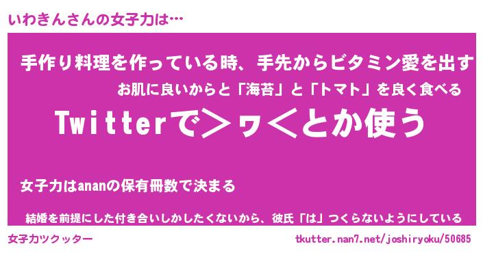 | ファンタジー風あだ名 | 『イワフェル』『エターナルイワキンー』 |