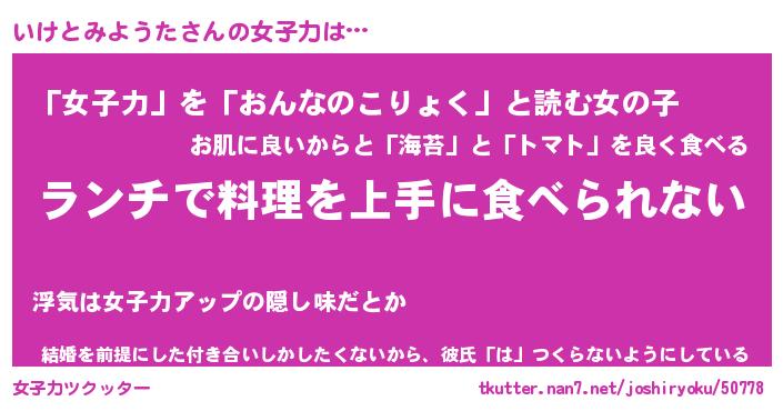 | 恥ずかしいあだ名 | 『プリティーいけとみようた』『いけちん』 |