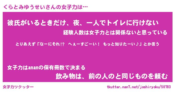 | 女子向けラノベタイトル風あだ名 | 『くらとみゆうせい姫と円卓の騎士』 |