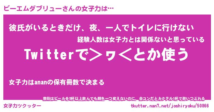 | 女子向けラノベタイトル風あだ名 | 『(仮)ビーエムダブリューのやんごとなき事情』 |