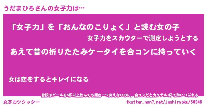 | 恥ずかしいあだ名 | 『プリティーうだまひろ』『うだっちょ』 |