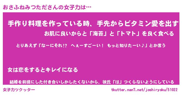 | 女子向けラノベタイトル風あだ名 | 『誰かこのおさふねみつただを説明してください! ~契約から始まるウェディング~』 |