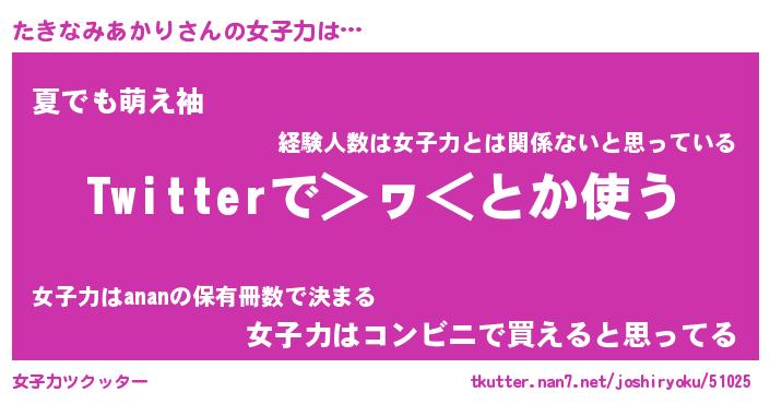 | ヘコむあだ名 | 『たきもー』『なまこ酢』『たきっぺ』 |
