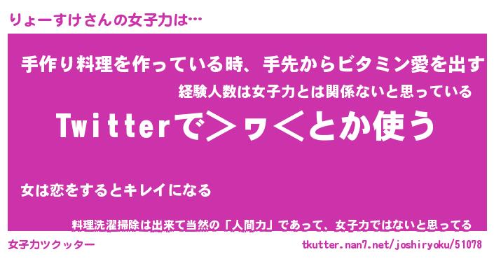 | ヘコむあだ名 | 『りょにー』『レバニラ』『りょっぺ』 |