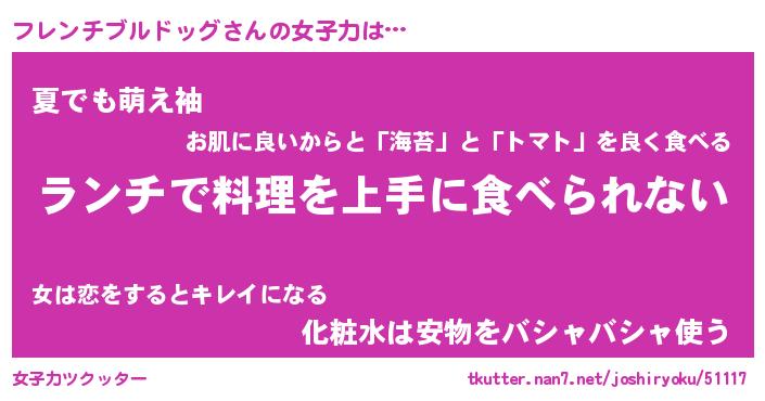 | 料理風あだ名 | 『ネギたっぷりフレンチブルドッグの南蛮漬け』 |
