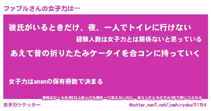 | ヘコむあだ名 | 『ファにゅー』『牛乳』『ファを』 |