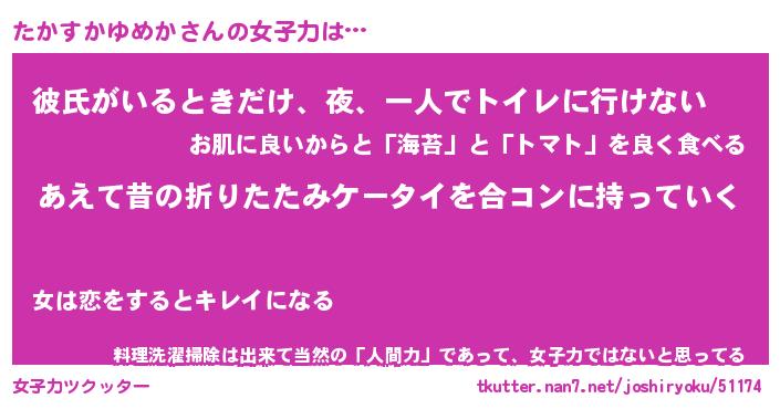 | 恥ずかしいあだ名 | 『プリティーたかすかゆめか』『たかちん』 |
