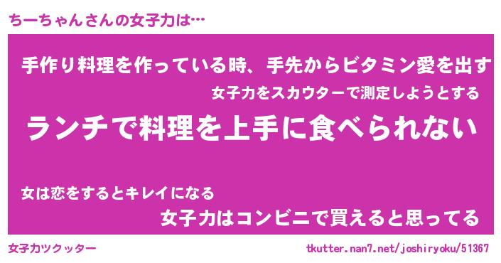 | 料理風あだ名 | 『ネギたっぷりちーちゃんの南蛮漬け』 |