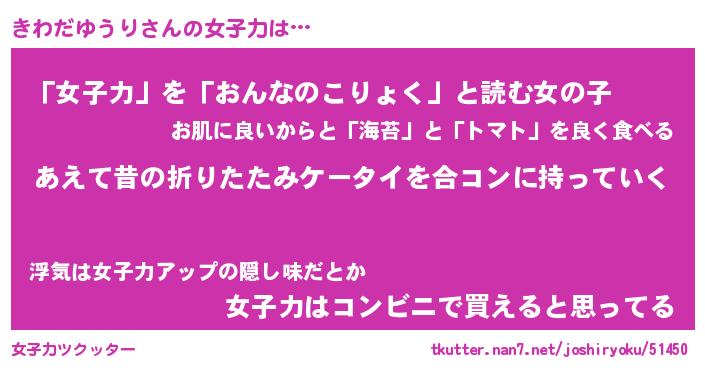 | 胡散臭い通販商品みたいなあだ名 | 『必ず成功するブレスレット…その名も「きわだゆうり」』 |