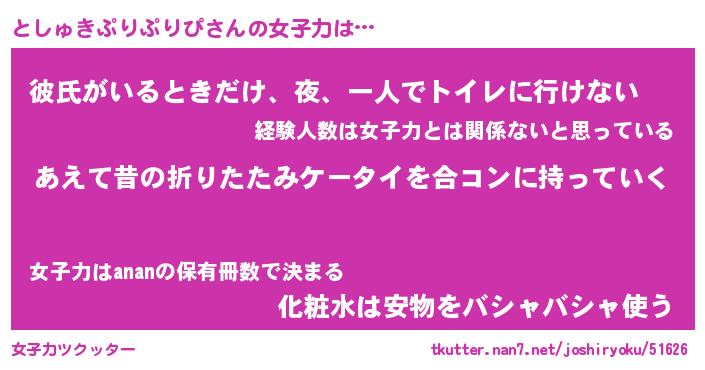 | 男性向けラノベタイトル風あだ名 | 『としゅきぷりぷりぴの憂鬱』 |