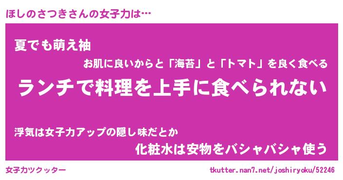 | 肩書あだ名 | 『ほしのさつき社長』『ほしのさつき班長』 |