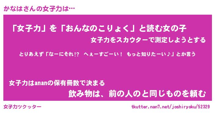 | ヘコむあだ名 | 『かなふぇ~』『酢こんぶ』 |