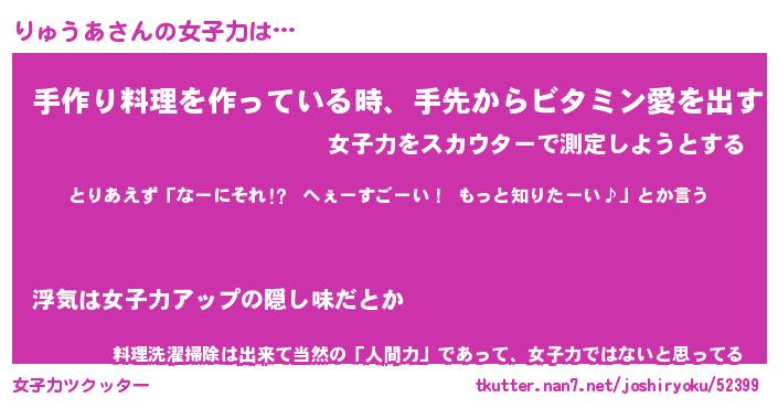 | ヘコむあだ名 | 『りゅふぇ~』『牛乳』『りゅっちょ』 |