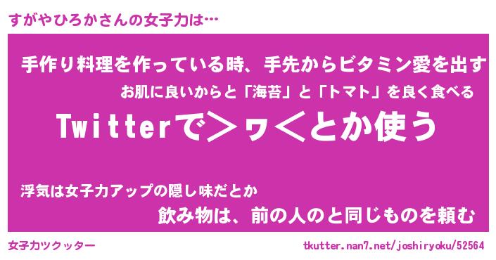 | 恥ずかしいあだ名 | 『プリティーすがやひろか』『すがっちょ』 |