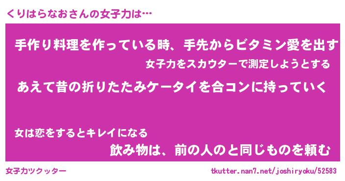 | ヘコむあだ名 | 『くりふぇ~』『牛乳』『くりっ子』 |