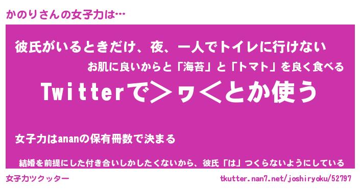| ヘコむあだ名 | 『かのもー』『豆乳』『かのぷりん』 |