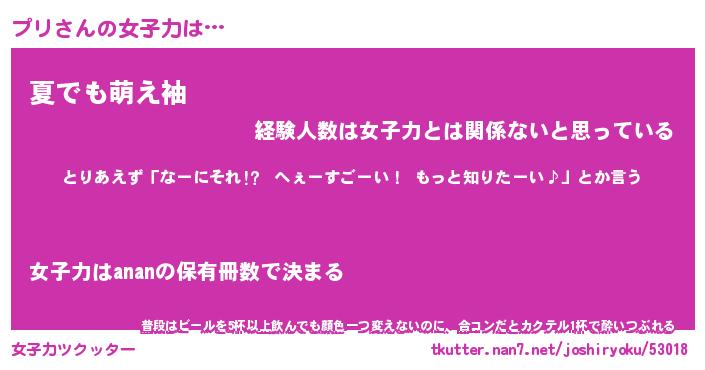 | ヘコむあだ名 | 『プリっふぃ~』『なまこ酢』 |