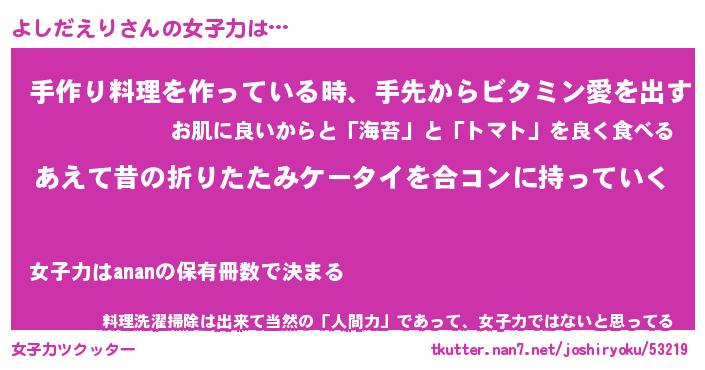 | ヘコむあだ名 | 『よしっふぃ~』『つくし』 |