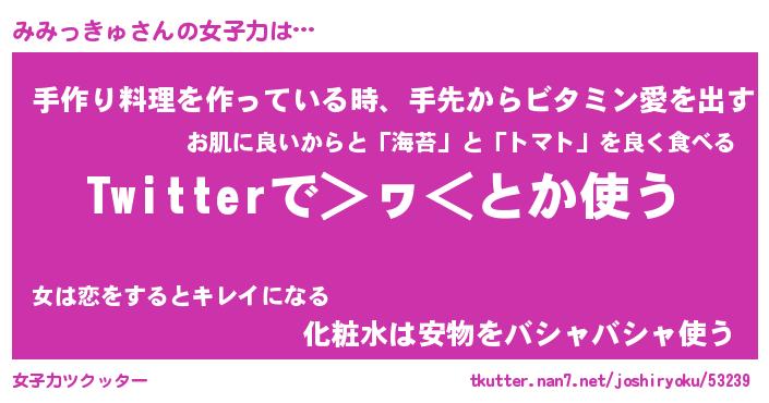 | 女子向けラノベタイトル風あだ名 | 『(仮)みみっきゅのやんごとなき事情』 |