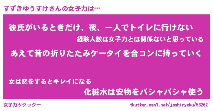 | 恥ずかしいあだ名 | 『プリティーすずきゆうすけ』『すずちん』 |