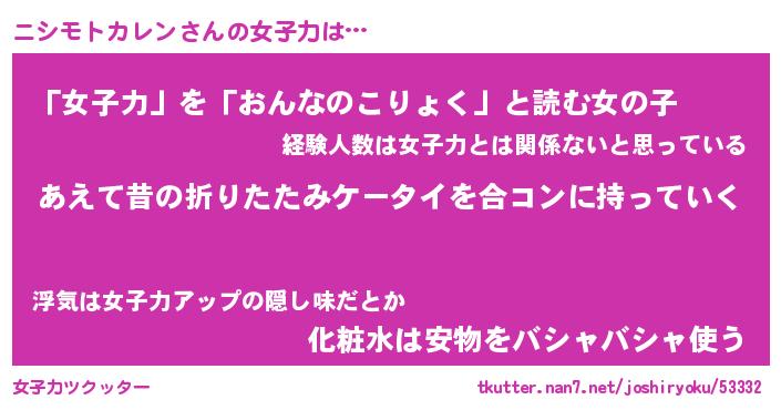 | ツイッター | ニシモトカレンさんのツイッターID『konnyaku_man』 |