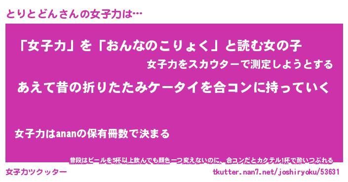 | ヘコむあだ名 | 『とりにー』『つくし』『とりを』 |