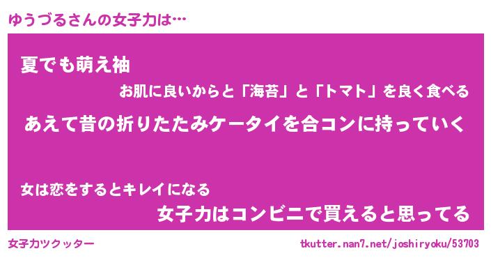 | 意味不明あだ名 | 『ペロリンゆうづる』『永久保存ゆうづる』 |