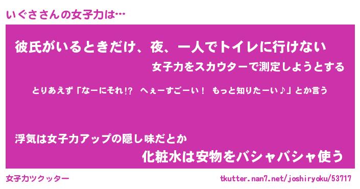 | ヘコむあだ名 | 『いぐにー』『豆乳』『いぐぷりん』 |