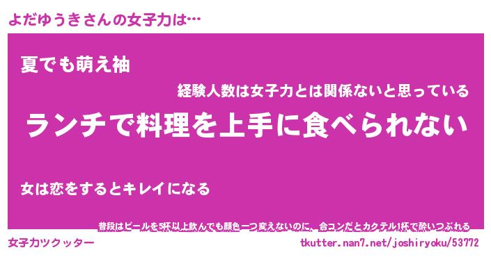 | ヘコむあだ名 | 『よだふぇ~』『なまこ酢』『よだお』 |