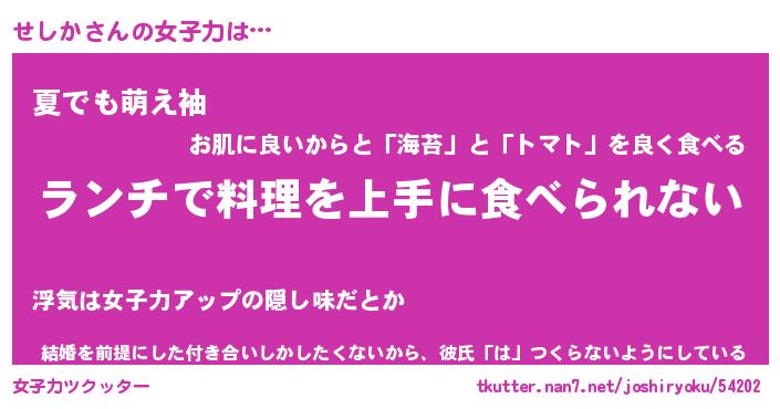 | ヘコむあだ名 | 『せしにゅー』『なまこ酢』『せしお』 |