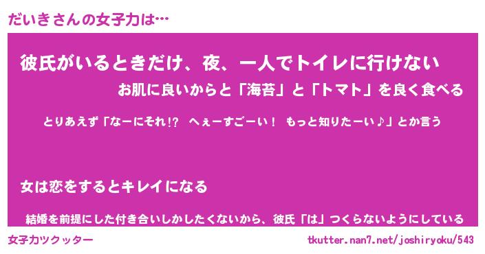 | ヘコむあだ名 | 『だいふぇ~』『豆乳』『だいっちょ』 |