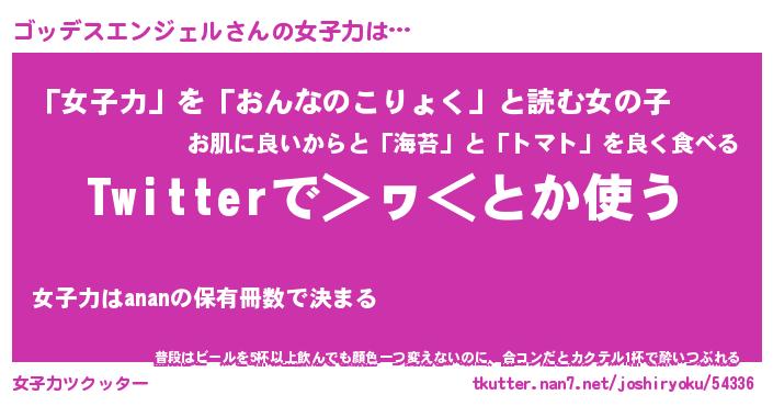 | 男性向けラノベタイトル風あだ名 | 『ゴッデスエンジェルの憂鬱』 |