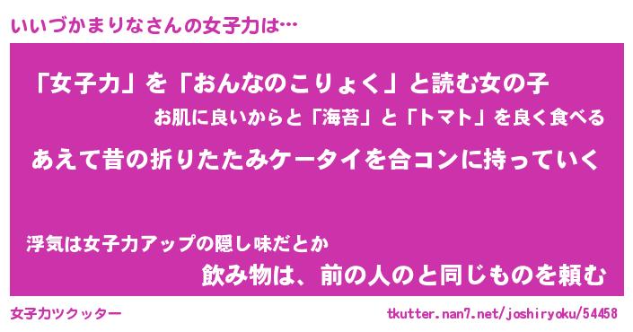 | 恥ずかしいあだ名 | 『プリティーいいづかまりな』『いいちん』 |