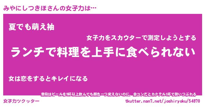 | ヘコむあだ名 | 『みやっふぃ~』『なまこ酢』 |