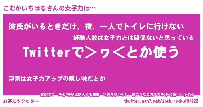 | 恥ずかしいあだ名 | 『プリティーこむかいちはる』『こむちん』 |
