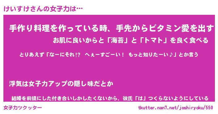 | 意味不明あだ名 | 『ペロリンけいすけ』『永久保存けいすけ』 |