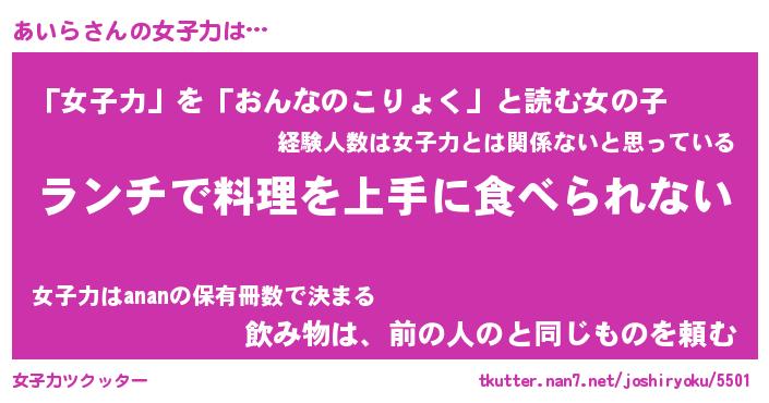 | 意味不明あだ名 | 『ペロリンあいら』『あいらフォーエバー』 |