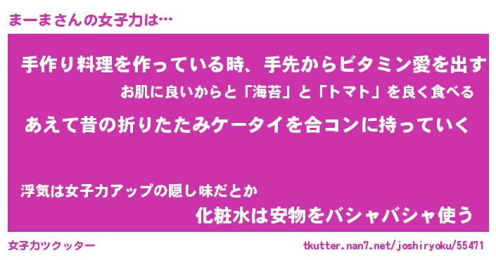 | 恥ずかしいあだ名 | 『プリティーまーま』『まーっちょ』 |