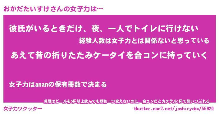 | ヘコむあだ名 | 『おかにー』『豆乳』『おかぷりん』 |