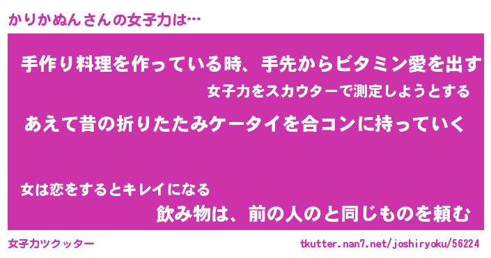 | 男性向けラノベタイトル風あだ名 | 『かりかぬんの憂鬱』 |