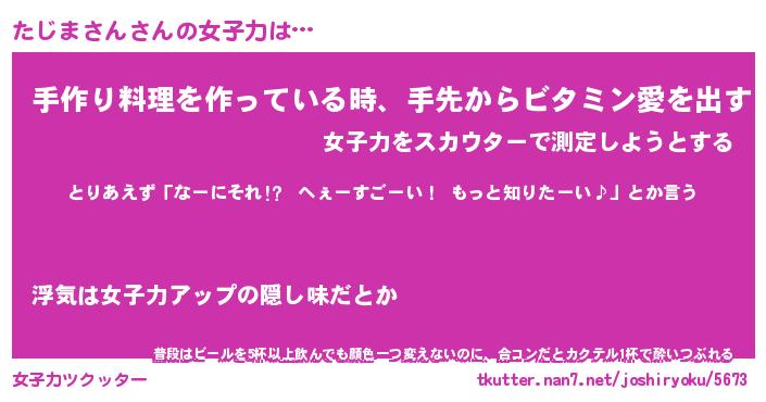 | 恥ずかしいあだ名 | 『プリティーたじまさん』『たじっちょ』 |