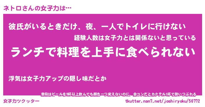 | ヘコむあだ名 | 『ネトにー』『つくし』『ネトっぺ』 |