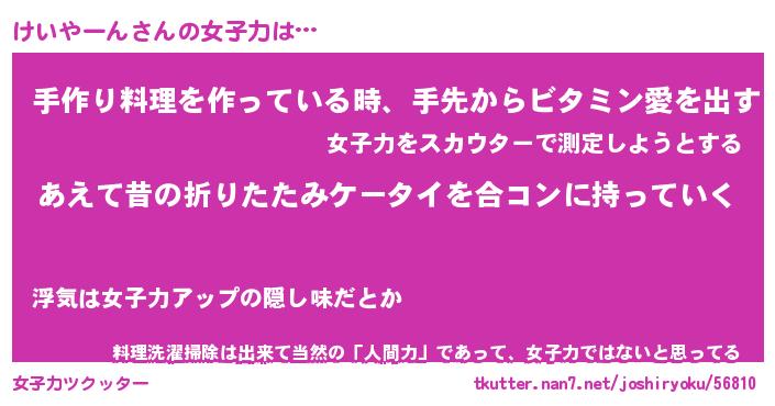 | ヘコむあだ名 | 『けいっふぃ~』『つくし』 |