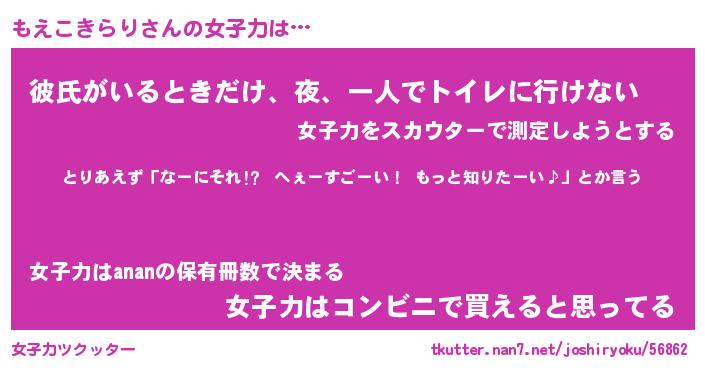 | ヒーロー風カッコイイあだ名 | 『スーパーモエコキラリ』『天弓騎士モエ』 |