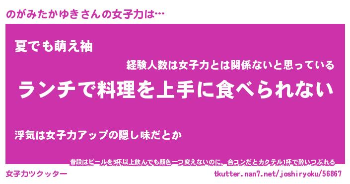 | ヘコむあだ名 | 『のがふぇ~』『つくし』『のがを』 |
