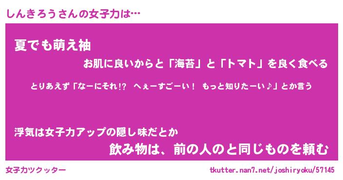 | ヘコむあだ名 | 『しんもー』『なまこ酢』『しんを』 |