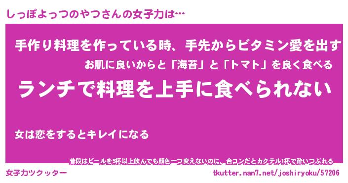 | 料理風あだ名 | 『ネギたっぷりしっぽよっつのやつの南蛮漬け』 |