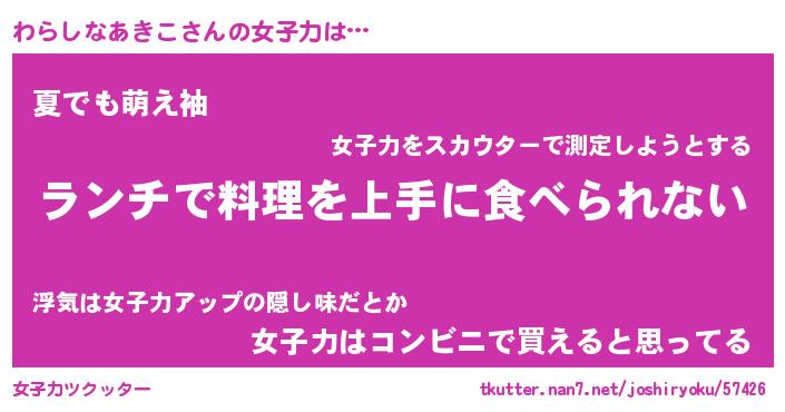 | ヒーロー風カッコイイあだ名 | 『スーパーワラシナアキコ』 |
