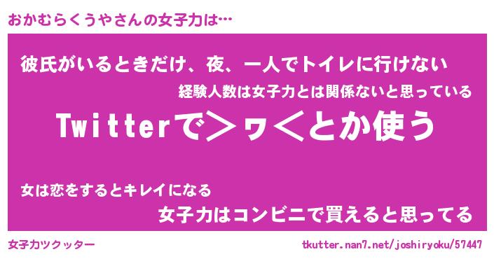 | 恥ずかしいあだ名 | 『プリティーおかむらくうや』『おかちん』 |